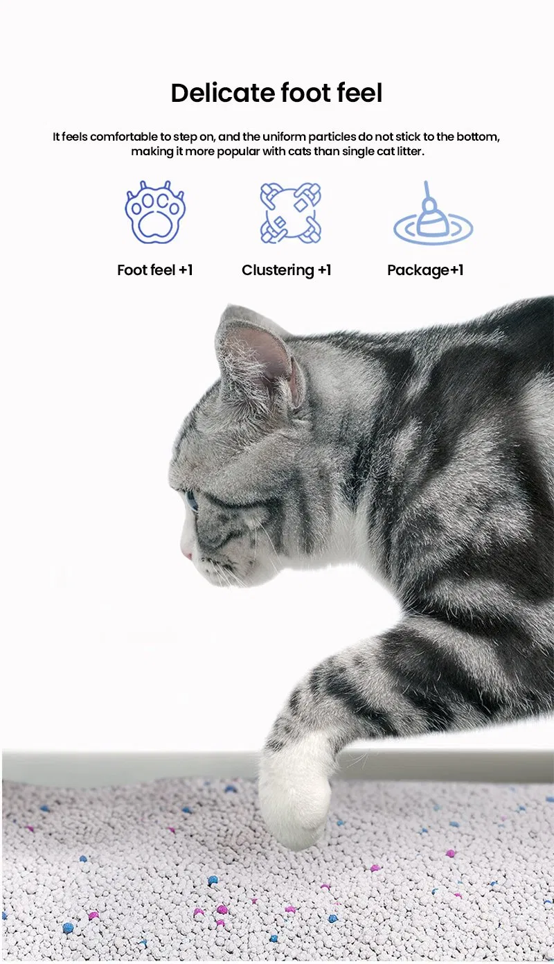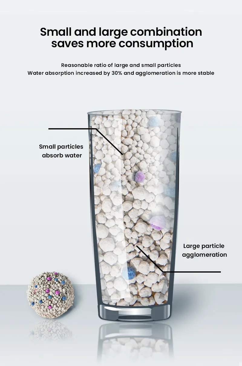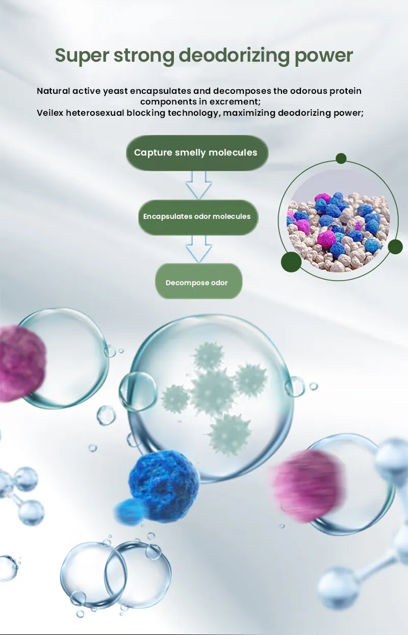 | Feature | Ultra Absorbent, Strong Clumping, Dust Free, Deodorization, Soluble Biodegradable |